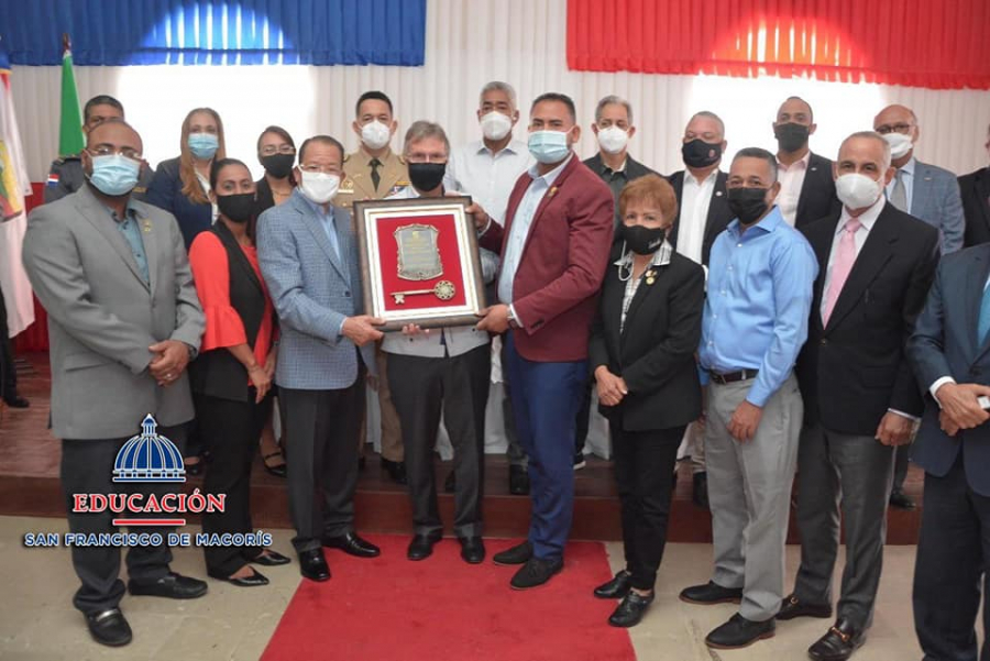 San Francisco de Macorís. – La directora Regional de Educación 07, María Guadalupe Bruno de Durán, participó, este miércoles 7 de abril, en un acto de entrega simbólica de la llave de la ciudad, al embajador de Brasil en la República Dominicana, Clemente Baena Soares.