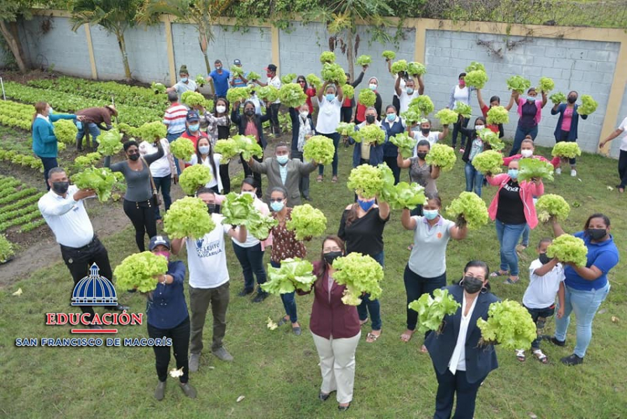 San Francisco de Macorís. –La directora Regional de Educación 07, María Guadalupe Bruno de Durán, junto a una comisión del equipo Regional para la creación de huertos Escolares, participaron, este viernes 09 de abril, en la entrega de cosechas de lechugas en los centros educativos Rafael Eduardo Valerio R. y Manolo Tavárez Justo.