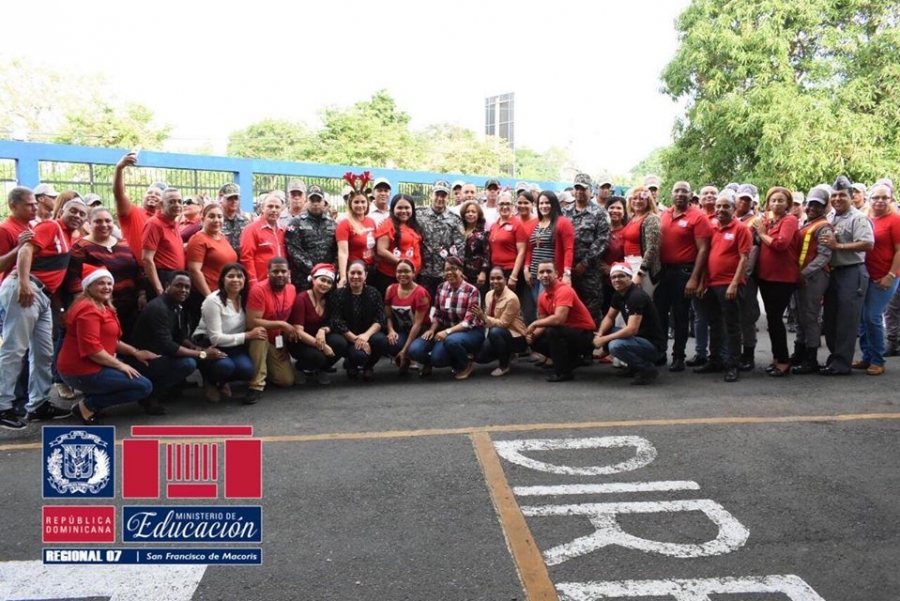 San Francisco de Macorís. - El Personal técnico docente y administrativo de la Regional de Educación 07 encabezado por la Directora Regional 07, Mariel Santos Mora, sorprendió este viernes con un asalto navideño, a la Dirección Regional del Comando Noreste de la Policía Nacional, al son de alegres canticos, güira, tambor y saxofón por el coro estudiantil del Liceo José Francisco Peña Gómez.